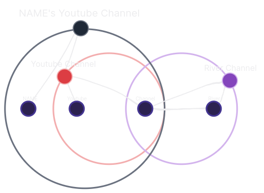 Here’s a crude mockup of how I imagine the compound node/note/page, [[ [[NAME]]’s [[ [[Youtube]] [[Channel]] ]] ]] and [[ [[River]] [[Channel]] ]], would look in a graph view: