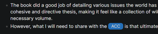 Hello, #Hashtags seem for me to be breaking the fluidity of reading a few paragraphs and I would like the have them hidden from the view but still appear if I hover the mouse over that block of text. Of course they are shown if I am in editing mode on that block but it would be so nice to have them shown on mouse hover (toggle ther visibility ON or have a popup just like when hovering over a page name).