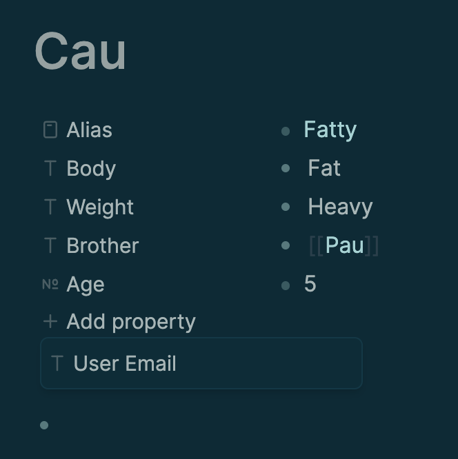In addition, I thought the User Name and User Email should be properties for my cat - Cau, not myself. So when I created a page for Cau, I could assign his email and name.